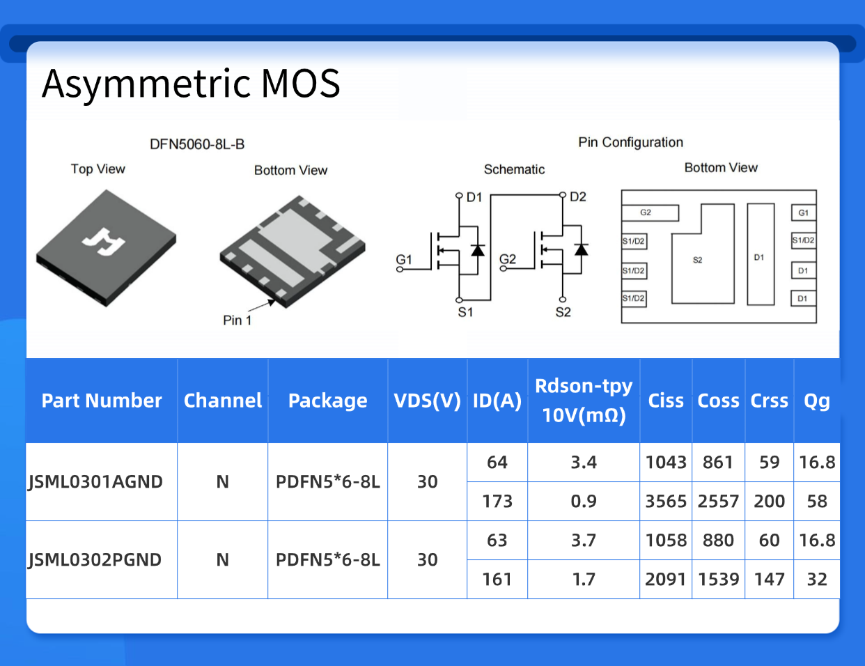 JSML0302PGND:在PDFN5×6封装内实现0.9mΩ超低阻抗,电流能力达173A